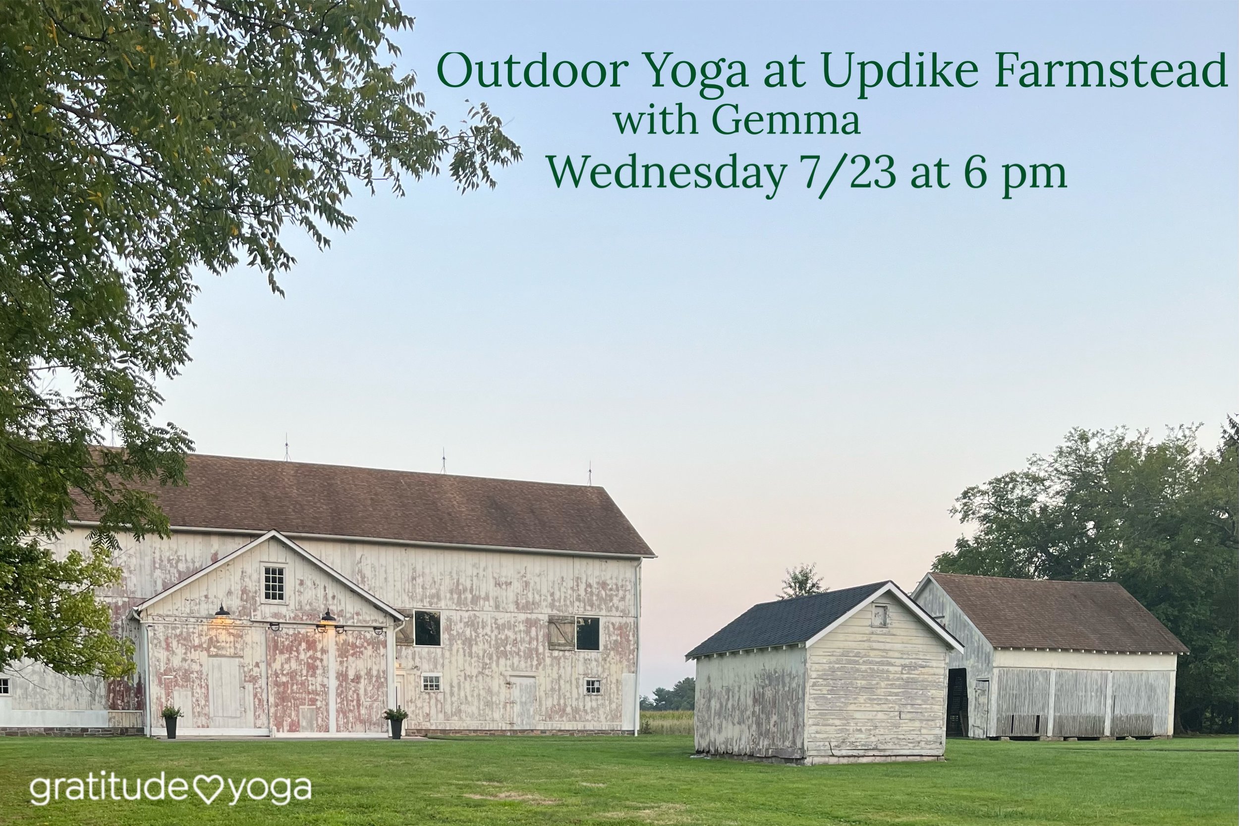We look forward to taking our practice outdoors to Historical Society of Princeton’s lovely Updike Farmstead on Quaker Road at 6 pm on Wednesday, July 23. Our donation-based all-levels Vinyasa Flow classes are open to all skill levels. We look forward to being together at the close of the day and lifting up our intentions.